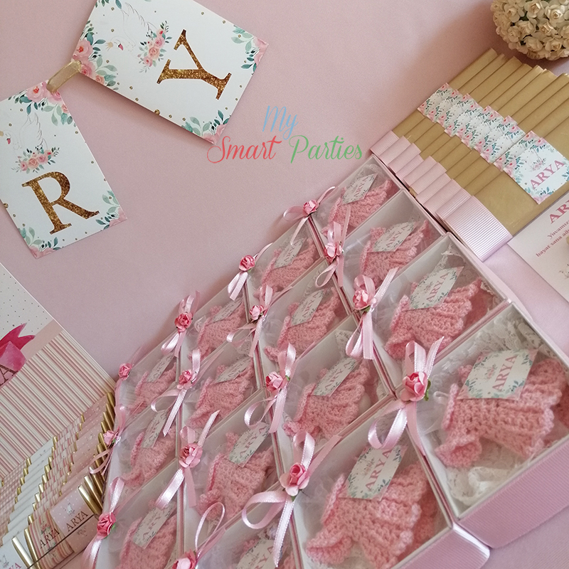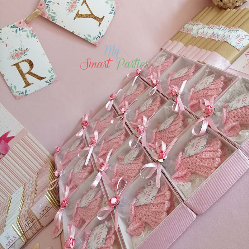 Baby Shower Gold Swan Konseptimizi ister doğum öncesi Baby Shower, isterseniz doğum sonrası Bebek Hastane Odası, Bebek Mevlitleri ve Doğum Günleriniz için hazırlayabiliriz. Bu sayfamızda bebeğimizin adı yazılı duvar banner, kürdan süsleri, pleksi çikolata kutusu ve sargılı madlen ve bar çikolatalar, çikolata dolgulu badem şekerli örgü elbise magnet hediyelikler hazırladık. Eğer farklı ürünler istiyorsanız iletişime geçmenizi rica ediyoruz.