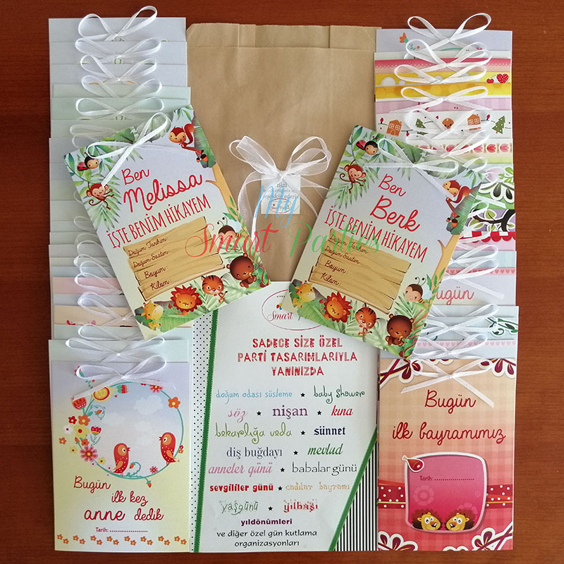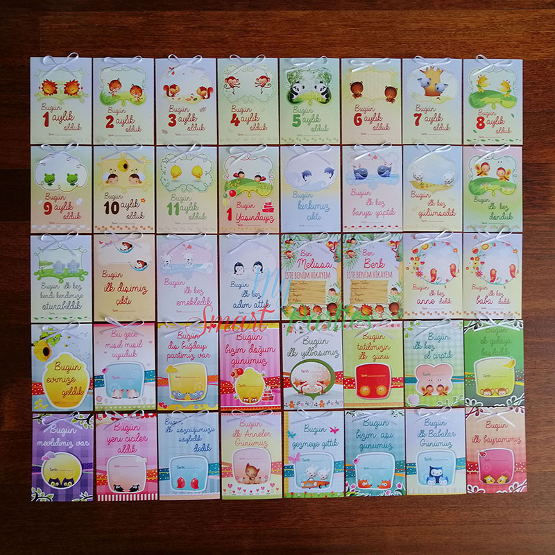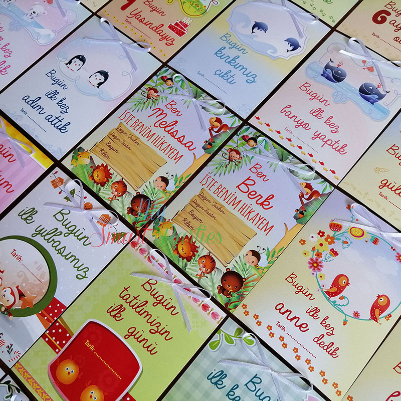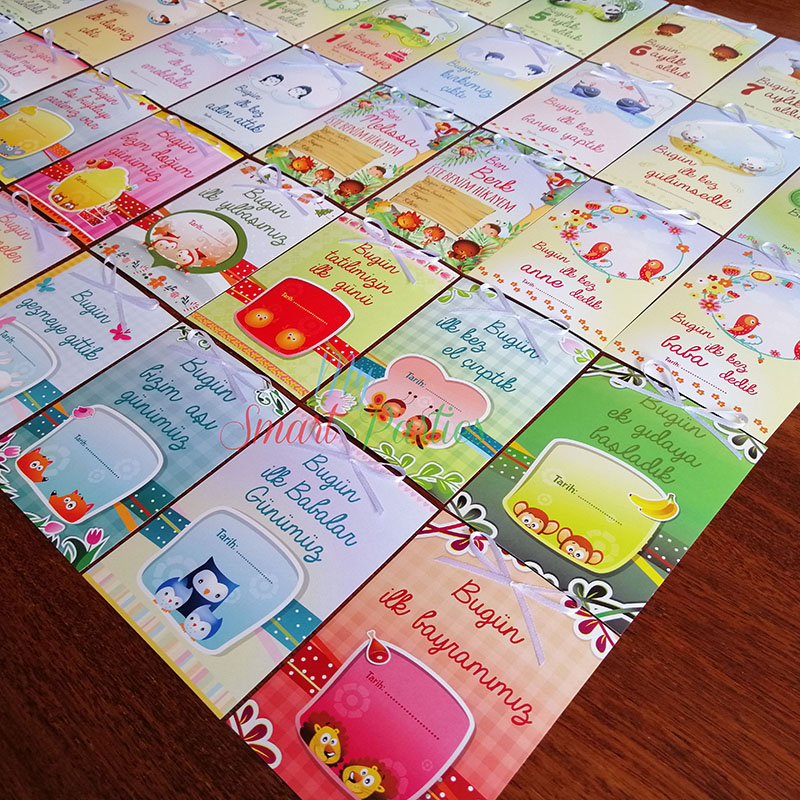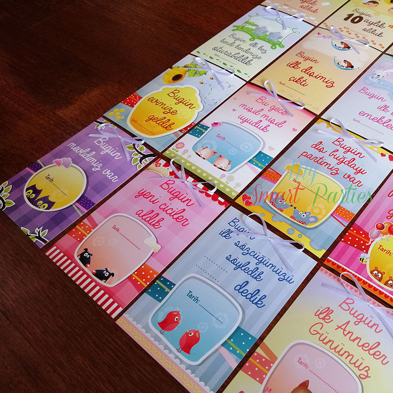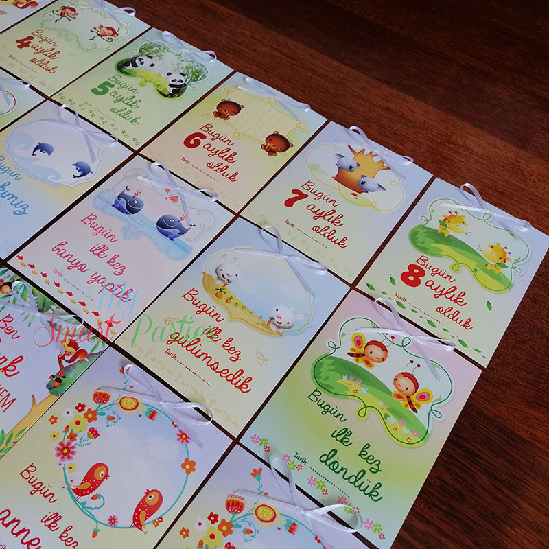 Kartlarınızın arkası boş olup not alabilirsiniz veya bebeklerinizin fotoğrafını yapıştırabilirsiniz. İsterseniz size özel karton çanta da sipariş edebilir, kartlarınızı karton çantanızda saklayabilirsiniz.
