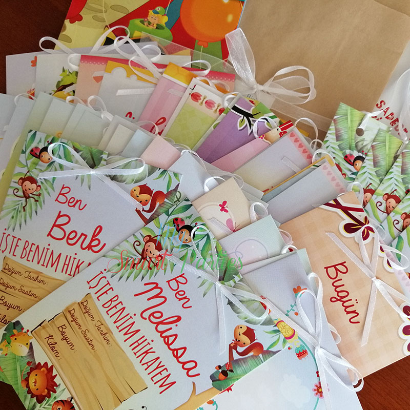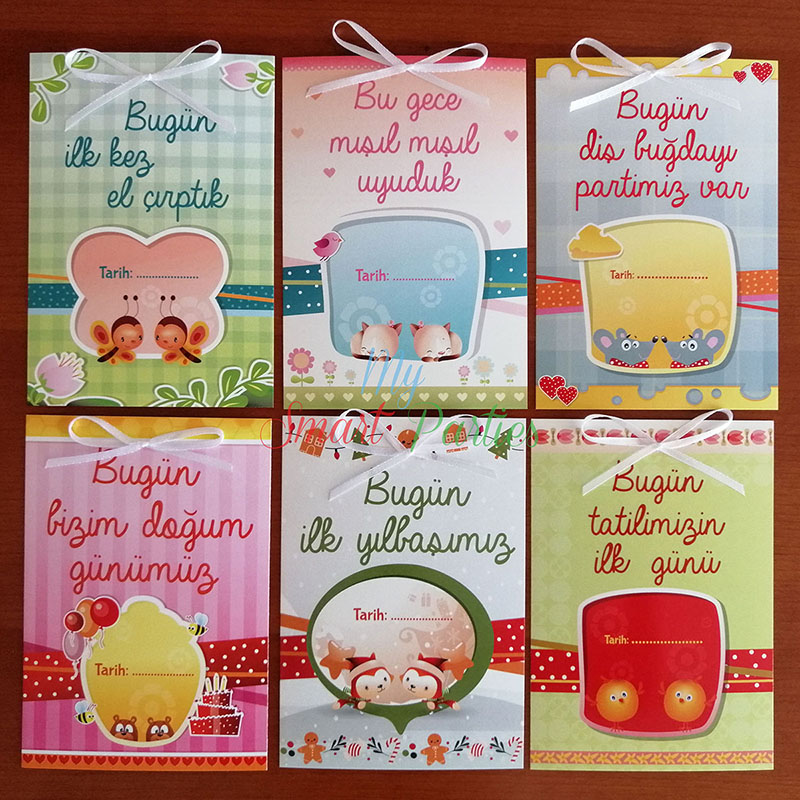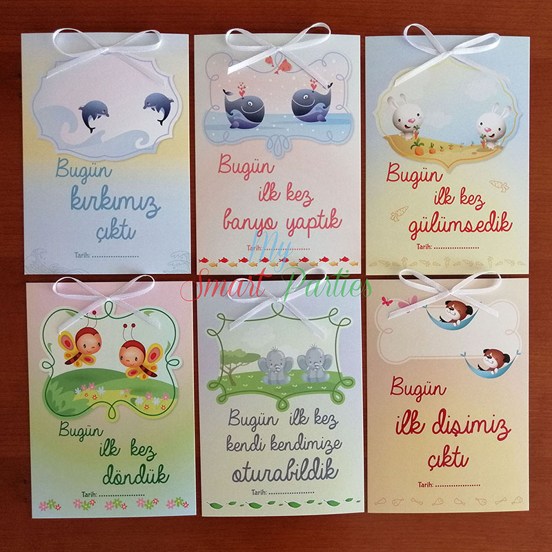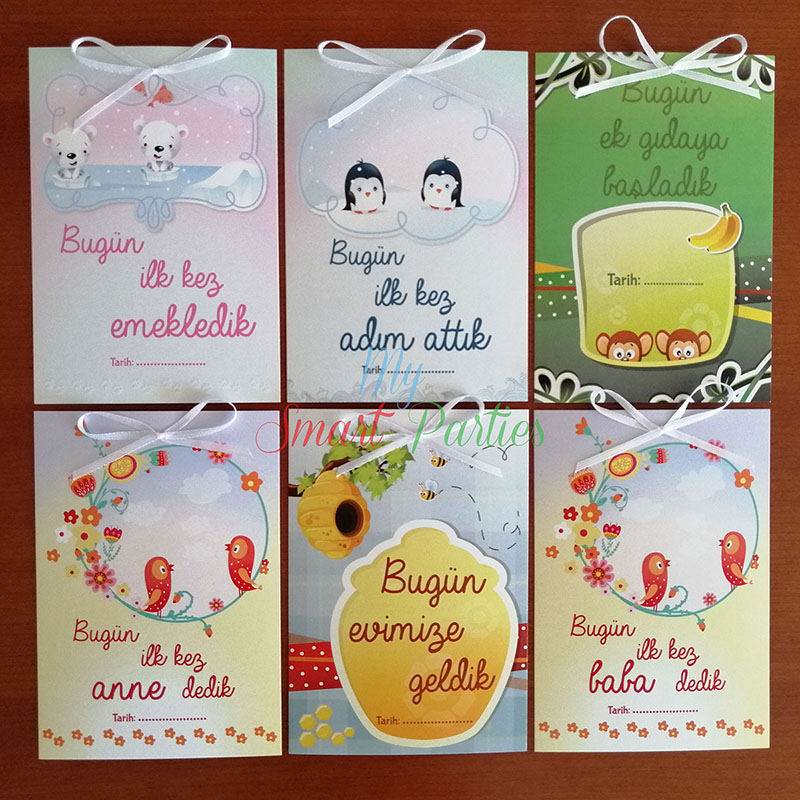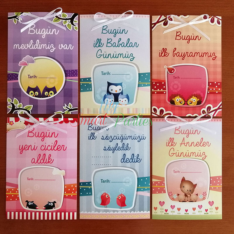 Kartlarınızın arkası boş olup not alabilirsiniz veya bebeklerinizin fotoğrafını yapıştırabilirsiniz. İsterseniz size özel karton çanta da sipariş edebilir, kartlarınızı karton çantanızda saklayabilirsiniz.