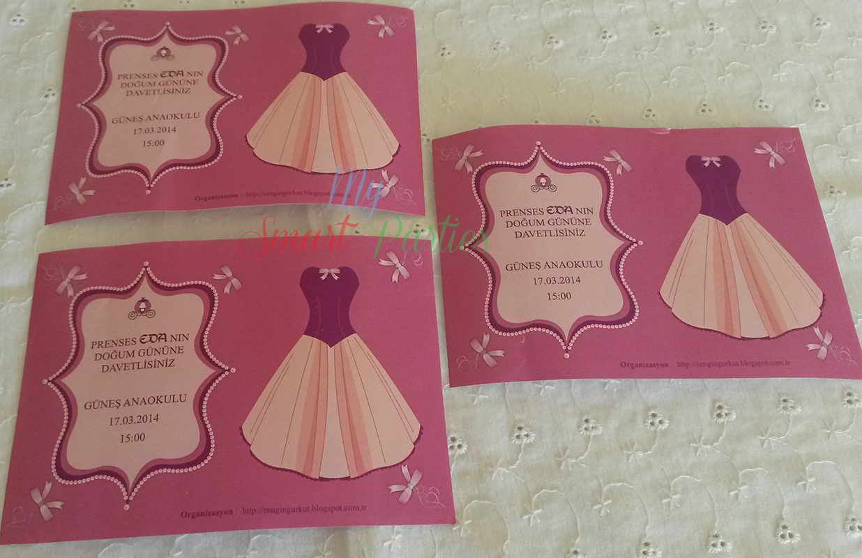 Prenses Temalı Doğum Günü Partimizle Karşınızdayız. Prenses Edamız bugün 5 yaşına giriyor. Eda 5. yaşını hem evinde hem de arkadaşlarıyla okulunda bir parti ile kutlamak istedi. Biz de büyük bir zevkle bu organizasyonu gerçekleştirdik. Sizin de temalı yaşgünü istekleriniz için yanınızdayız. Bu sayfadaki gibi temanıza uygun bir şekilde yapacağımız çerçeveniz, parti bayraklarınız, fotoblog duvar ve kapı yazınız, hediye kutularınız ve teşekkür kartlarınız, hediyelikleriniz ve etiketleri, popcorn veya kuruyemiş kutularınız, kürdan süsleriniz, amerikan servis, peçetelik, bardak ve tabak yazılarınız, su şişesi ve meyve suyu şişelerinizin etiketleri size özel tasarlanacaktır.. Kişi sayısına göre istediğiniz üründen istediğiniz adette  olmak üzere temanıza uygun bir parti yaratmak elinizde.