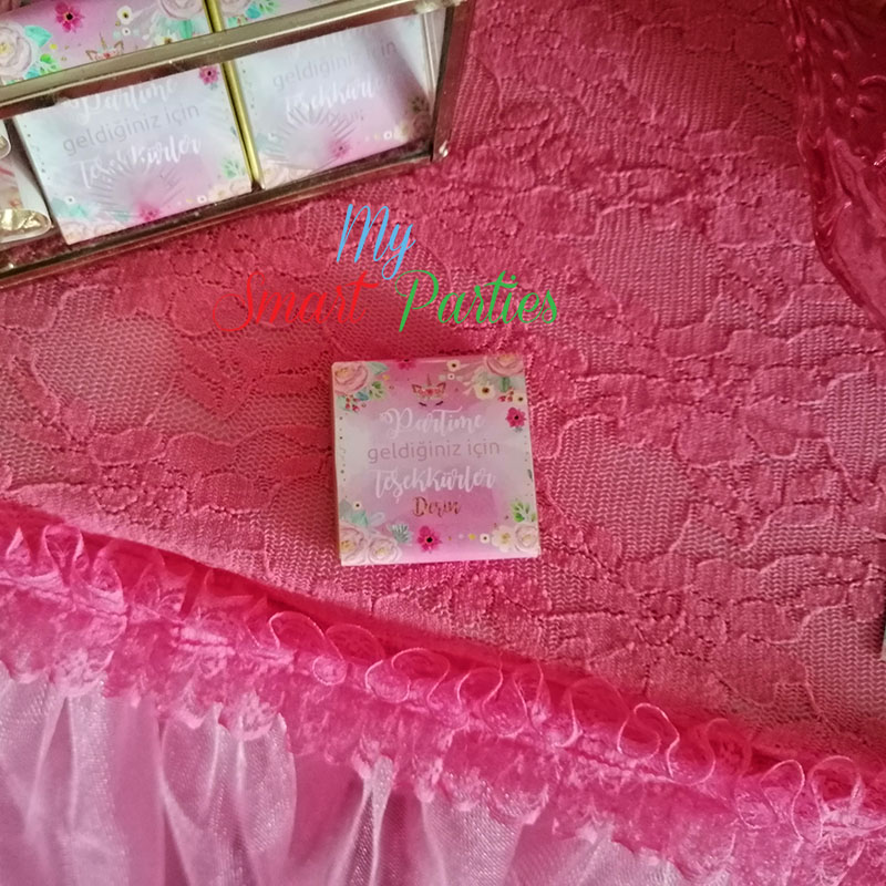 Söz, nişan, kız isteme, ve bebek çikolatalarımız isme özel hazırlanmaktadır. Size özel temalardaki etiketlerle hazırlanan madlen çikolatalarımızı isteğinize göre kartlı, karton, metal kutuda ya da kutusuz olarak size göndermekteyiz. Çikolata batonlarımızı da her türlü etkinliğinizde size özel temada etiketlerle hazırlıyoruz. Çikolatalarımız size özel alınmakta olup taze, kaliteli ve markadır, kokolin kullanmıyoruz.